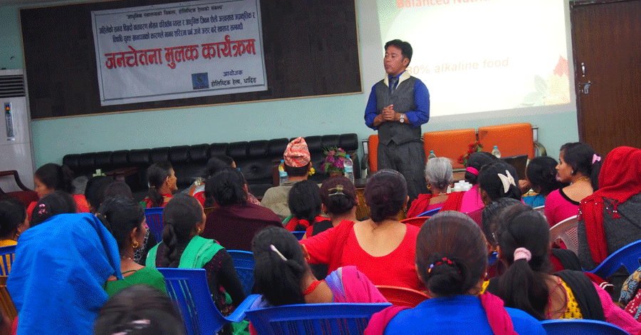 होलिस्टिक हेल्थ ईन्टरप्राईजेज धादिङको म्यानेजिङ डारेक्टर सुशिला रिजालले अहिलेको समय विग्रदो वातावरण, मौसम परिवर्तन, ब्यस्त र आधुनिक जिवनशैलि, अस्वास्थ्य, आप्राकृतिक र विषादी युक्त खानपानको कारणले मानव शरिरमा हुने असर बारे जानकारी दिनको लागि सेमिनार आयोजना गरिएको बताउनु भएको थियो ।