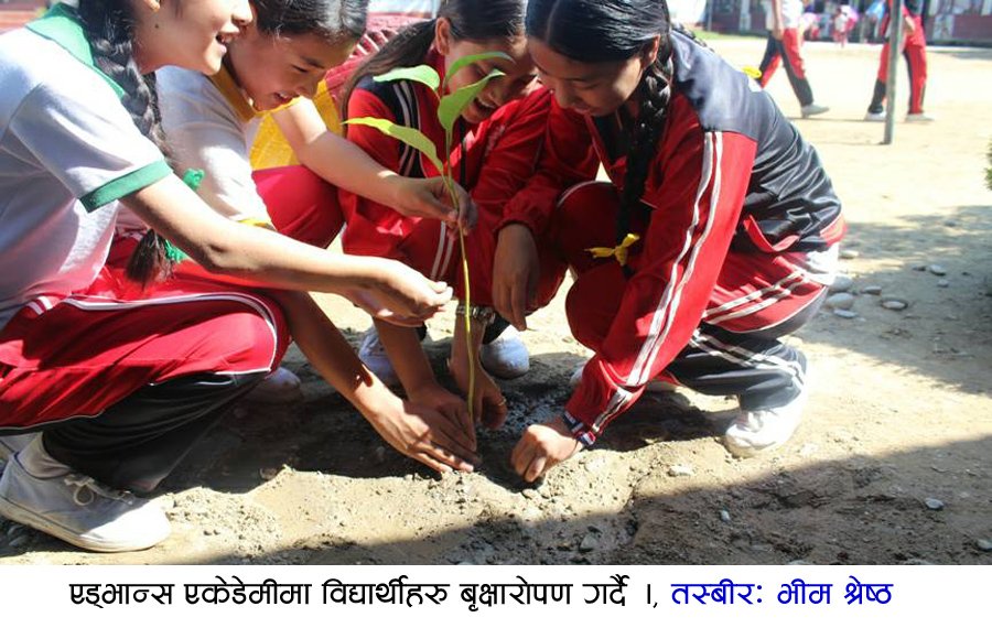त्यस्तै धादिङबेसी स्थित एड्भान्स एकेडेमीले पनि सम्पूर्ण विद्यार्थी र शिक्षक/शिक्षिकाको सहभागितामा विद्यालय पाङ्गणमा सरसफाइ र बृक्षारोपण गरि दिवस मनाएको छ ।