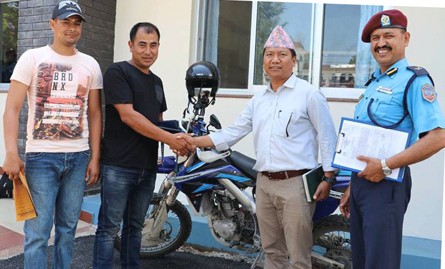 प्रदेश ४ का प्रहरी प्रमुख डिआईजी दानसिंह बोहराले कागजपत्र सहित आएका श्रेष्ठलाई बाइक हस्तान्तरण गरेका हुन् ।