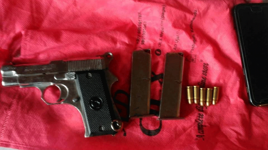 प्रहरीले उनीहरुको साबाट मेड ईन जर्मन लेखिएको ‘७९१७–१९९२ वाई’ नम्बरको एकथान पेस्तोल, दुईथान म्यागजिन र ५ राउण्ड गोली बरामद गरेको छ ।