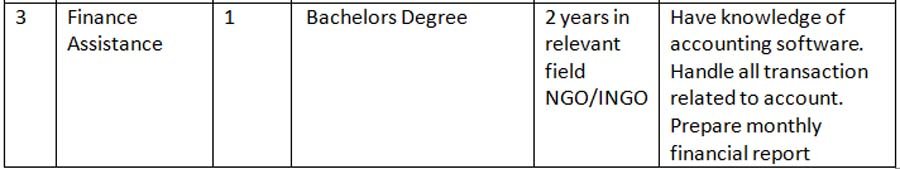 Note: Applicants should clearly mention the applied position in the email subject. All email application without clearly mentioned position will be disqualify. All the positions will be field based except finance assistance. The entire applicant will be treated with high confidentiality