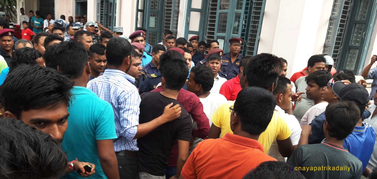 सप्तरीको रुपनी गाउँपालिका–६ स्थित तेरहौता वीरेन्द्र बजारबाट दुई सयको संख्यामा आएका मृतक बच्चाका परिवारजन तथा आफन्तले आकस्मिक कक्षका चिकित्सकमाथि दुर्व्यवहार गर्दै अर्का अहेवलाई कुटपिटसमेत गरेका छन्।