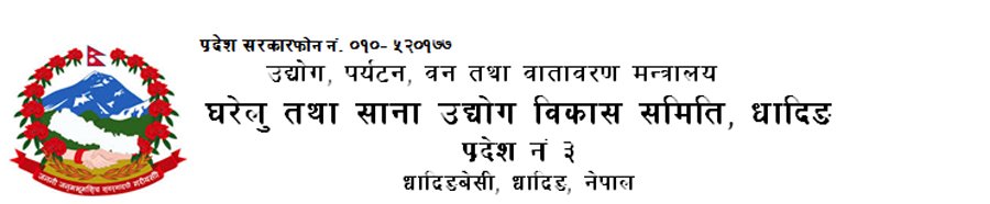 घरेलु तथा साना उद्योग विकास समिति धादिङको चालु आ.व ०७५-०७६ को स्वीकृत वार्षिक कार्यक्रम अनुसार लघु, घरेलु तथा साना उद्यमीहरुलाई जिल्ला स्तरमा प्रविधि हस्तान्तरण कार्यक्रम अन्तर्गत बढिमा रु १,००,०००। (अक्षररुपि एक लाख रुपैया मात्र) सम्मको मेशिन औजार ८० प्रतिशत छुट मुल्यमा हस्तान्तरण गरिने हुँदा इच्छुक उद्यमीहरुले यो सुचना प्रथम पटक प्रकाशित भएको मितिले ३० दिन भित्र अनिवार्य रुपमा तपशिलमा उल्लेखित कागजात सहित यस कार्यालयबाट प्राप्त हुने निवेदन फारम भरी निवेदन दस्तुर वापतको रु १००। (अक्षररुपि एक सयमात्र) यस कार्यालयमा बुझाएको रसिद संलग्न राखी निवेदन दिनु हुन अनुरोध छ । साथै म्याद नाघि आएको र रित नपुगेको निवेदनलाई उपरोक्त कार्यक्रममा समावेश नगरिने व्यहोरा समेत जानकारी गराउँदै यस सम्बन्धि थप जानकरी चाहिएमा यस कार्यालयको फोन.नं ०१०–५२०१७७ माकार्यालय समयमा सम्पर्क राख्नु हुन समेत यो सुचना प्रकाशित गरिएको छ ।