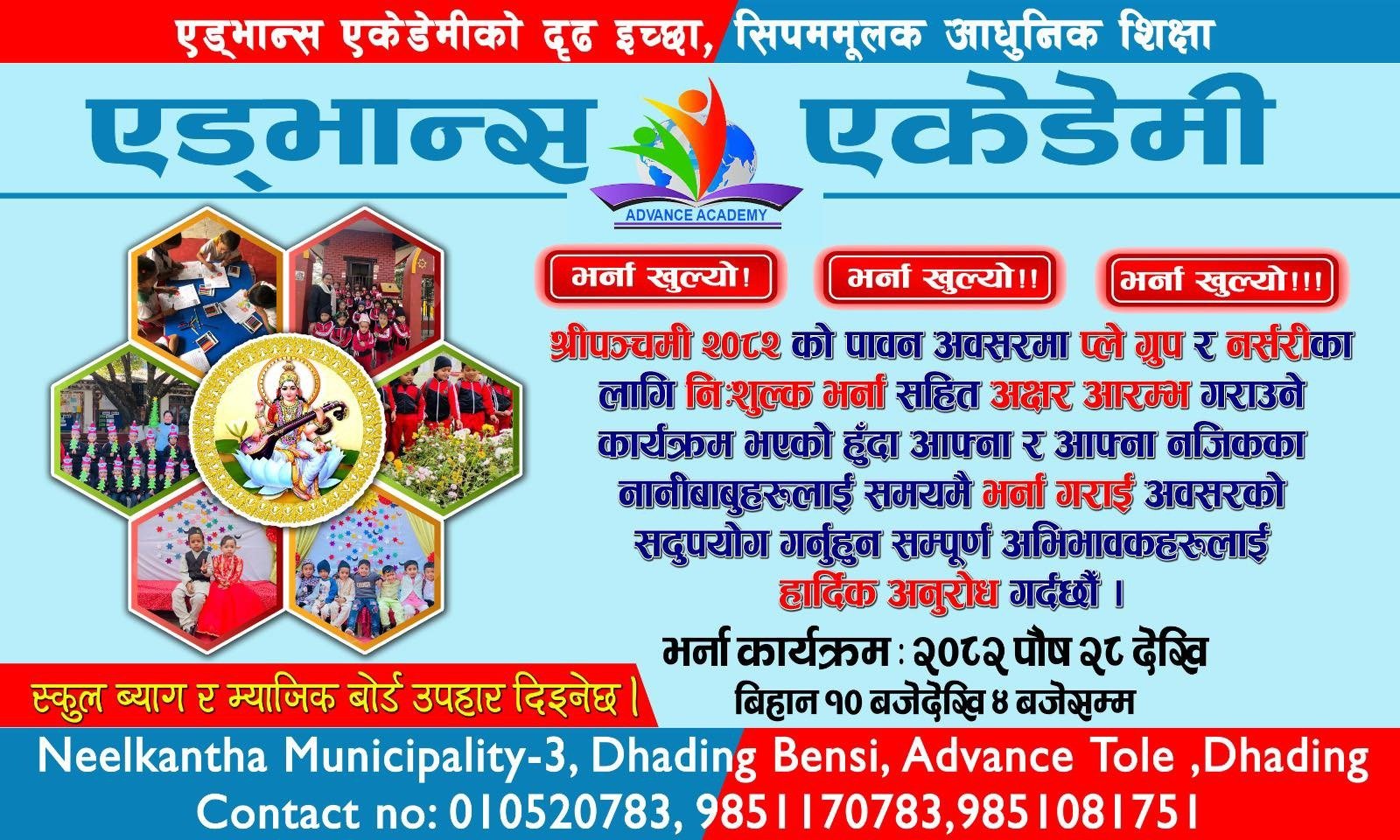 एड्भान्स एकेडेमी कम्पनी संचालनक समितिका अध्यक्ष अर्जुनकुमार श्रेष्ठ गोर्खालीको सभापतित्वमा भएको उक्त कार्यक्रमको संचालन प्रिन्सिपल गोविन्द बुढाथोकीले गरेका थिए ।