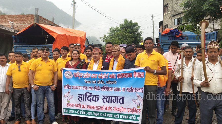 हिमाल घलेको सभापतित्व तथा बलबहादुर गुरुङको संचालनमा मा सम्पन्न अधिवेशनको उद्घाटन सत्रमा प्रमुख अतिथि एवम् राष्ट्रिय लोक तथा दोहोरी गीत प्रतिस्ठान नेपाल वरिष्ट उपाध्यक्ष रमेश बि. जी. ले केन्द्रिय भवन निमार्णमा धादिङले गरेको सहयोग महत्वपूर्ण रहेको बताएका थिए ।