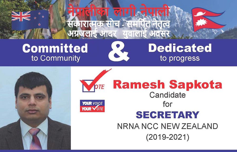 रमेश सापकोटा NRNA NZ NCC को सचिव पदमा उम्मेदवारी