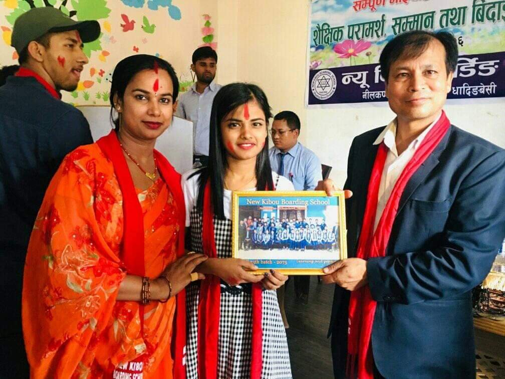 विद्यालय परिसरमा एक भव्य कार्यक्रमकाे आयाेजना गरि न्यू किबाे बाेर्डिङले एईईमा उत्कृष्ट नतिजा प्राप्त गर्न सफल विद्यार्थीहरुलाई सम्मान तथा विदाई गरेकोे गरेकाे हाे ।
