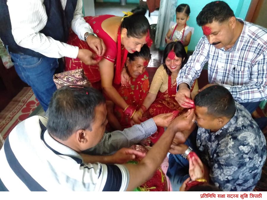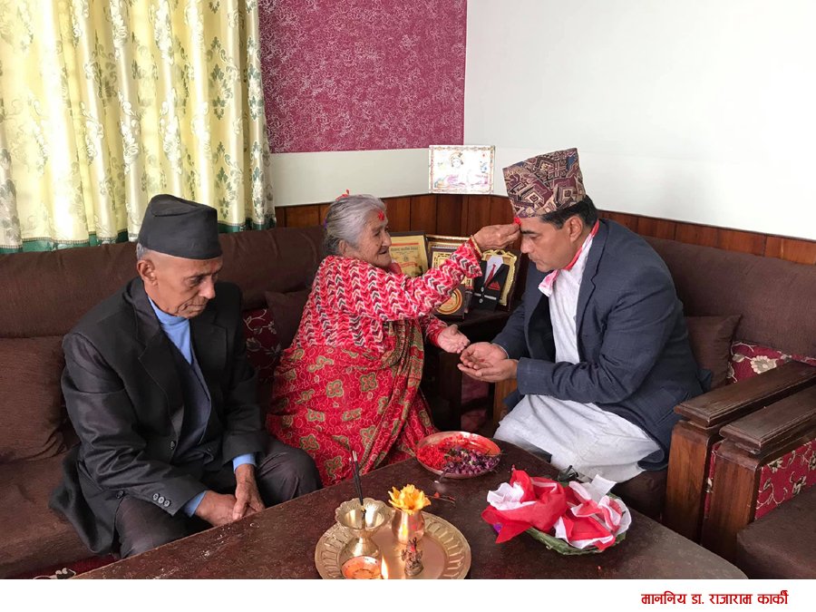 माननिय संघीय संसद खेम लोहनीले टिकाको दिनको फोटो सार्वजनिक गर्नुभएको छैन, भने माननिय डा. राजाराम कार्कीले बाबु आमाको हातबाट टिका ग्रहण गरेको फोटो फेसबुकमा अपलोड गर्नुभएको छ ।