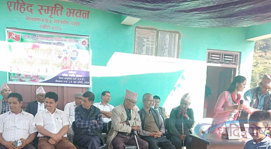 धादिङ असोज २८ । धादिङको सदरमुकाम नजिकै निलकण्ठ नगरपालिका २ पिपलडाँडामा सहिद स्मृति भवनको उद्घाटन गरिएको छ ।