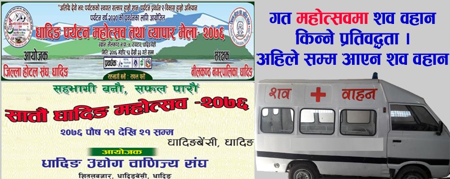 पहिलो धादिङ महोत्सव पछिका जति पनि धादिङमा विभिन्न महोत्सव भएपनि धादिङ पहिचान र धादिङ चिनाउने कुनै पनि सामाग्री पर्दशनी नहुँदा आयोजकहरु आलोचित बन्दै आईरहेको बेला फेरि केहि दिनको अन्तरालमा हुने दुई महोत्सवलाई आयोजकले कसरी आकर्षण योग्य बनाउन सक्छन् त्यो भने हेर्न बाँकी रहेको छ ।