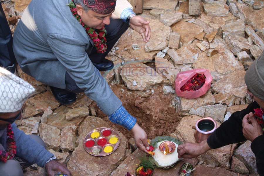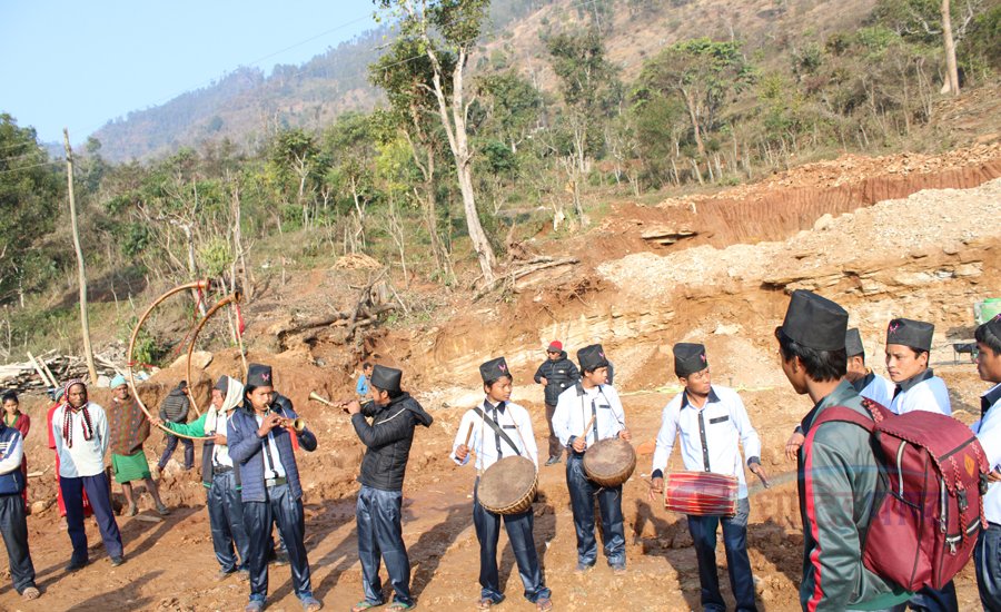 शिलान्यास कार्यक्रमका चेपाङ पन्चे बाजा बजाएर स्वागत गरिएको थियो ।