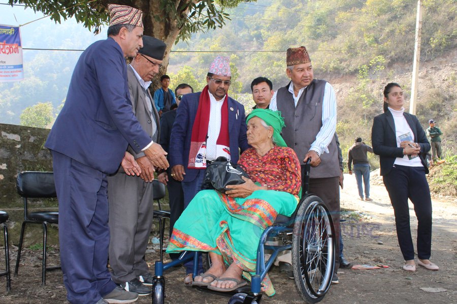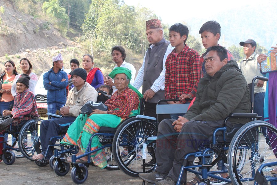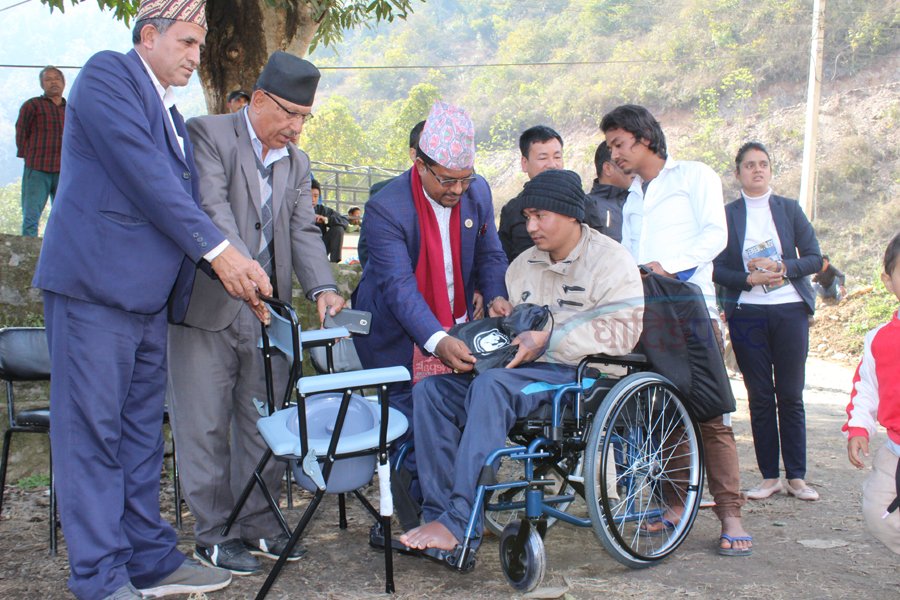 एक साता अघि गाउँपालिका भित्र रहेका अपाङ्गता भएका व्यक्तिलाई आवश्यक पर्ने ह्वील चियर नाप लिएको गाउँपालिकाले सोमबार एक कार्यक्रमका बीच ह्वील चियर प्रदान गरिएको हो ।