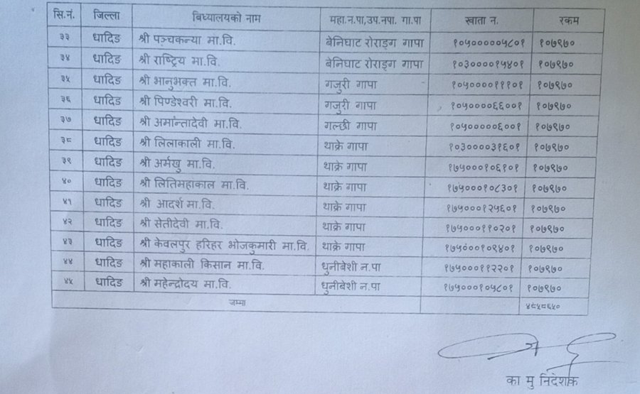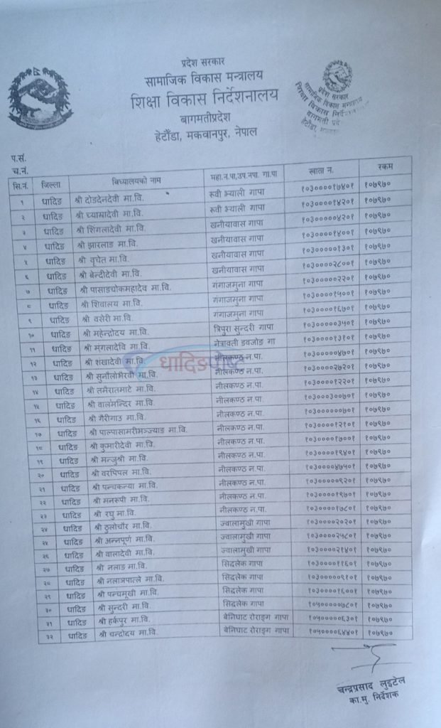 धादिङका ४५ विद्यालयलाई प्रदेश सरकारको शिक्षण सिकाई अनुदान प्राप्त (नाम समेत)
