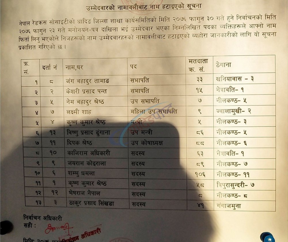 उम्मेदवारी फिर्ता गर्ने उम्मेदवारहरु
