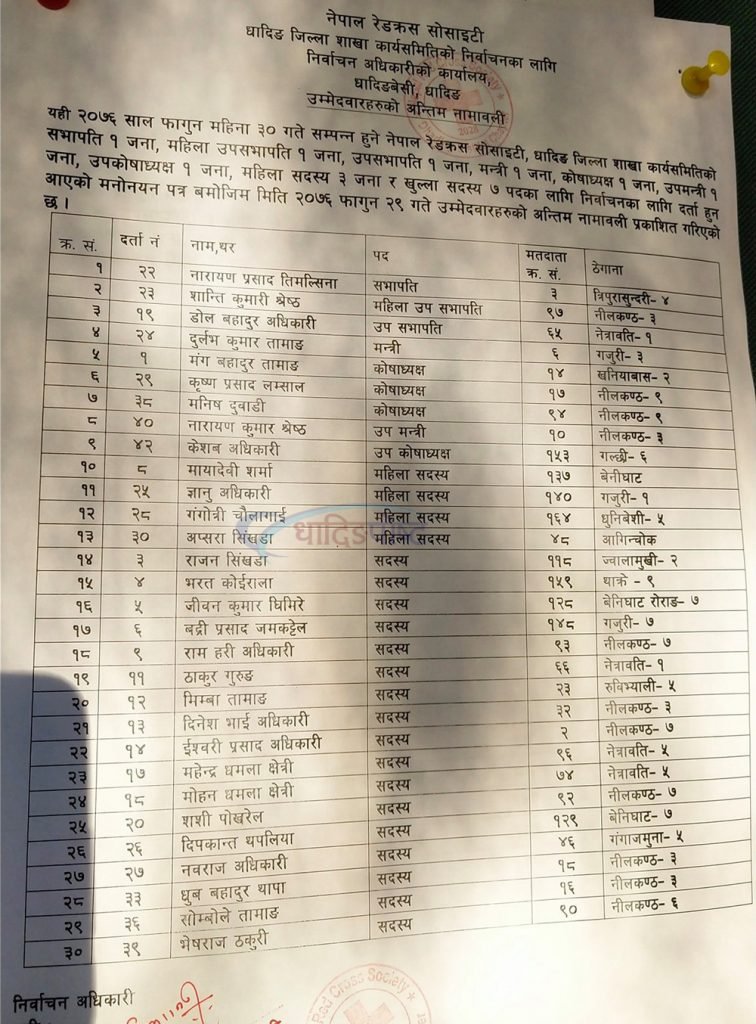 रेडक्रस धादिङको मतदान सुरु (यस्ता छन् उम्मेदवारहरु)