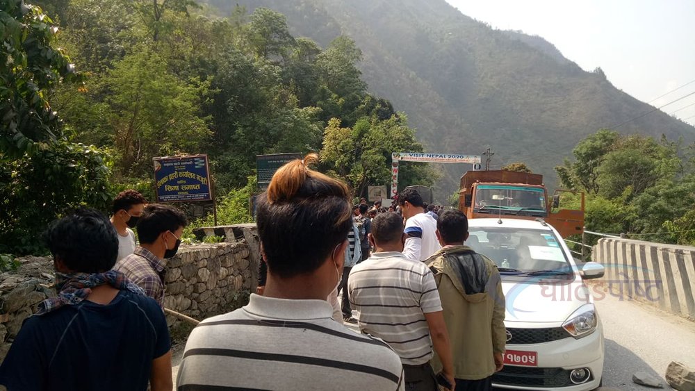 धादिङको मौवा खोलामा, घर हिडेका पैदल यात्री रोकिएपछि झडप (फोटो फिचर)