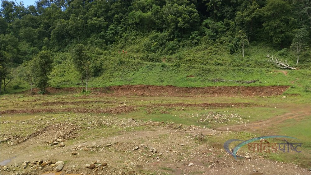मुअब्जा दिनु पर्ने २९ रोपनी र २० रोपनी सार्वजनिक गरि ५० रोपानी क्षेत्रफलमा प्याराफिट सहितको रंगशाला सल्यानटारमा निमार्ण सुरु भए सँगै जिल्लाभर हर्षको संचार भएको थियो । तर जव एक स्थानीयले सामुदायीक वनको काठ फडानी भएको भन्दै अख्तियारमा उजुरी गरे तव काम रोकिन पुग्यो