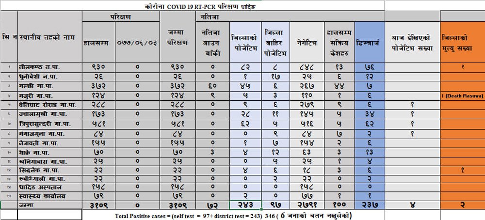 जिल्ला स्वास्थ्य कार्यालयले आज सार्वजनिक गरेको अहिले सम्मको रेकर्ड