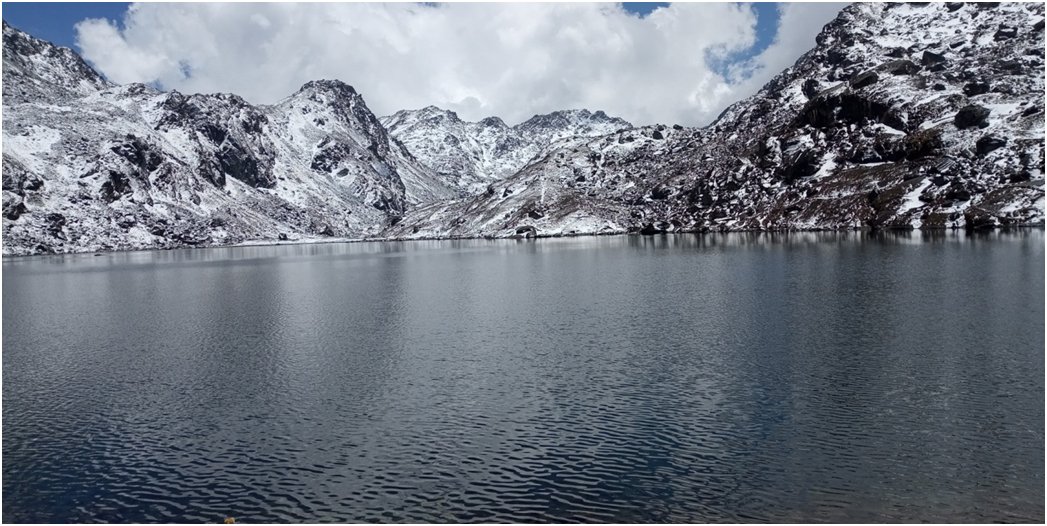 हाम्रो यात्रा सुनौलो झुल्के घामसंगै प्रारम्भ भयो । तीनतिरबाट उचालिएका चुचुराहरु हिउंले ढाकिंदा संधैजसो चन्द्रमालाई भनिने गरेको चांदिको घेरा आज आफ्नै धरातलमा छरपष्ट थियो । हामी यिनै दृष्य सहितको क्यामराभित्र कैद हुन थाल्यौं । हामीले माटो टेक्ने अवस्था थिएन । लाग्थ्यो, चांदीको किस्तिमा धर्तीले हात फिजाई रहेको थियो ।