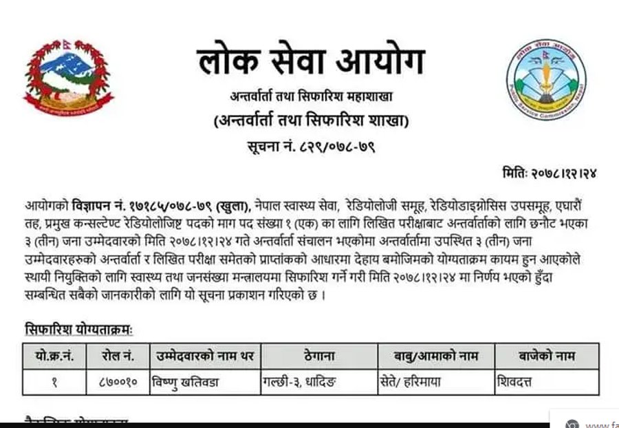 यस्तो छ लोकसेवा आयोगको सिफारिस सम्बन्धी सूचना