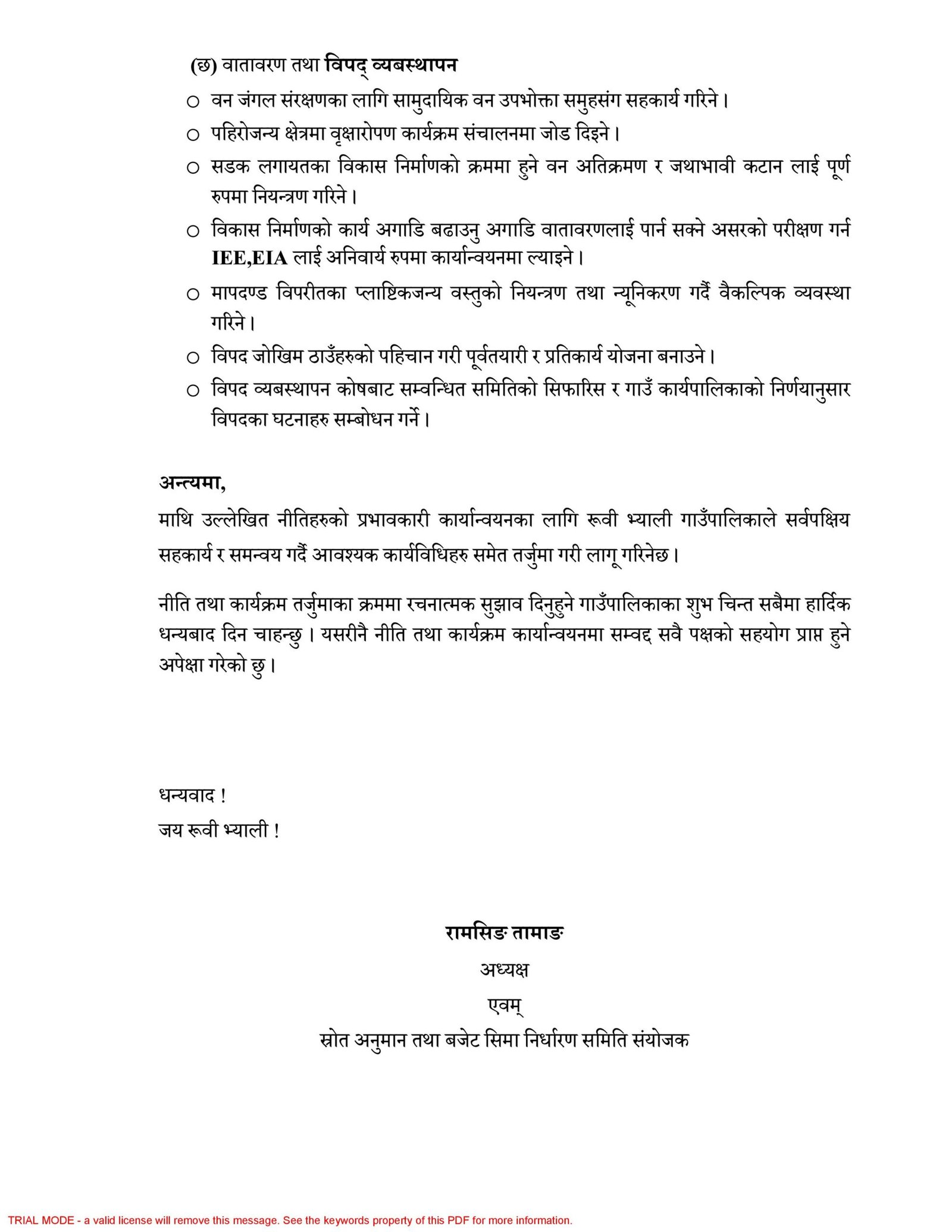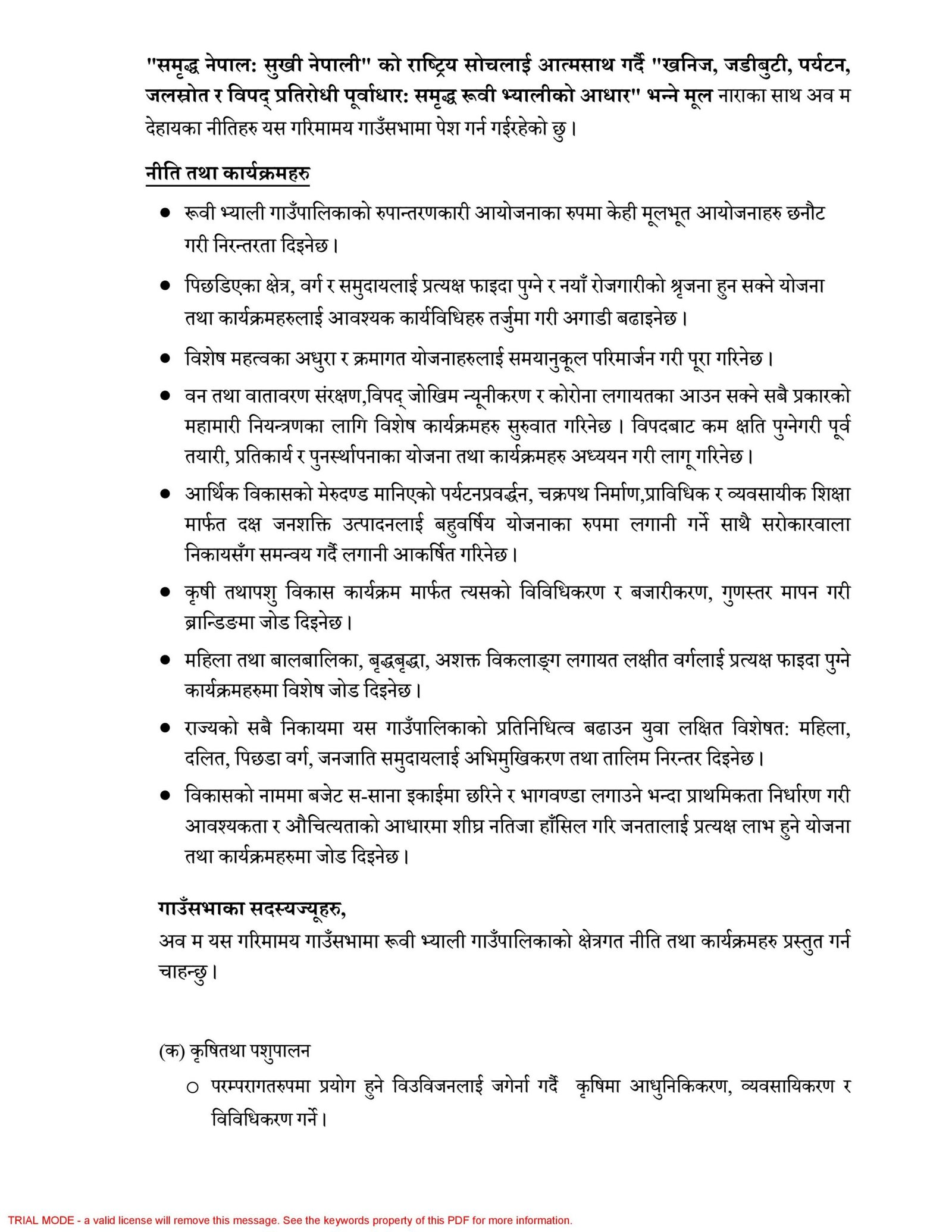 रुबीभ्यालीको २०७९/८० को नीति, बजेट तथा कार्यक्रम