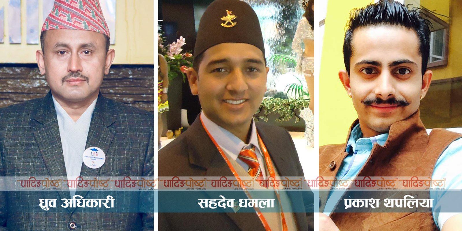 एमाले-कांग्रेस नीकट पर्यटन व्यवसायीहरुको प्यानलले अध्यक्षमा धादिङका ध्रुव अधिकारीलाई अगाडी सारेको छ, अधिकारी एमाले धादिङका नेता समेत हुन् भने सत्ता गठबन्धन घटकहरुको प्यानलबाट धादिङका सहदेव धमलाले उपाध्यक्षमा उम्मेदवारी दिएका छन् उनी माओवादी नीकट हुन् । यस्तै धादिङ सिद्धलेक गाउँपालिकाबाट काठमाडौं गई पर्यटन व्यवसाय गर्दै आएका प्रकाश थपलियाले सदस्य पदमा उम्मेदवारी दिएका छन् । उनले ध्रुव अधिकारीको प्यानलबाट उम्मेदवारी दिएका हुन् ।