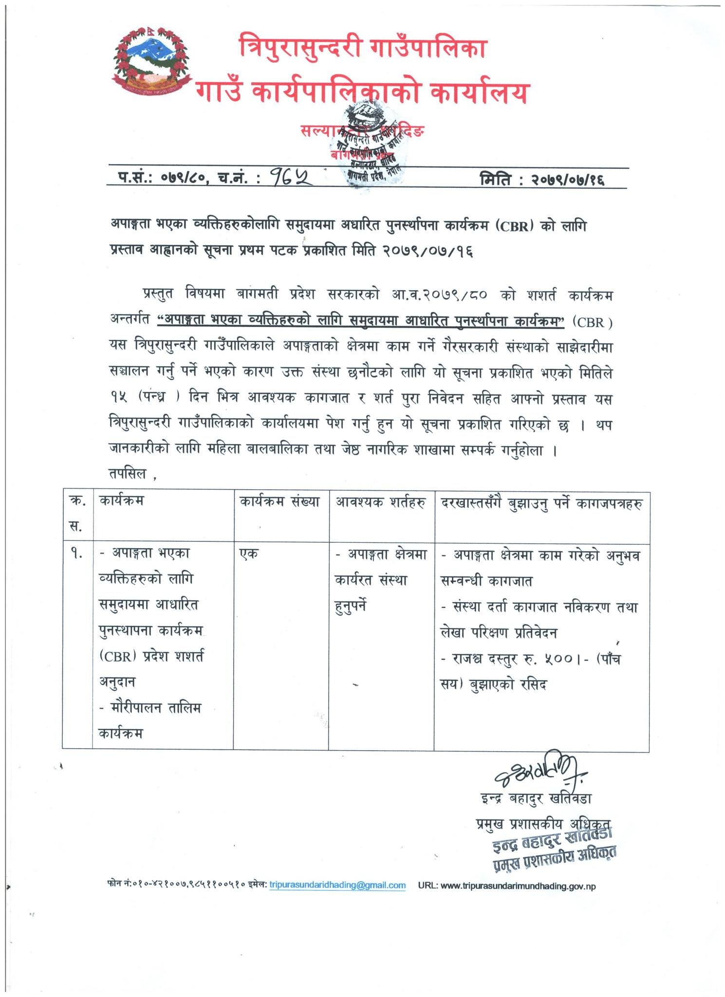वालवालिकाहरुका लागि भत्ता वितरण र अपांगता भएका व्यक्तिहरुका लागि समुदायमा आधारित पूनस्थापना कार्यक्रमका लागि प्रस्ताव आव्हान सम्बन्धि सूचना !!