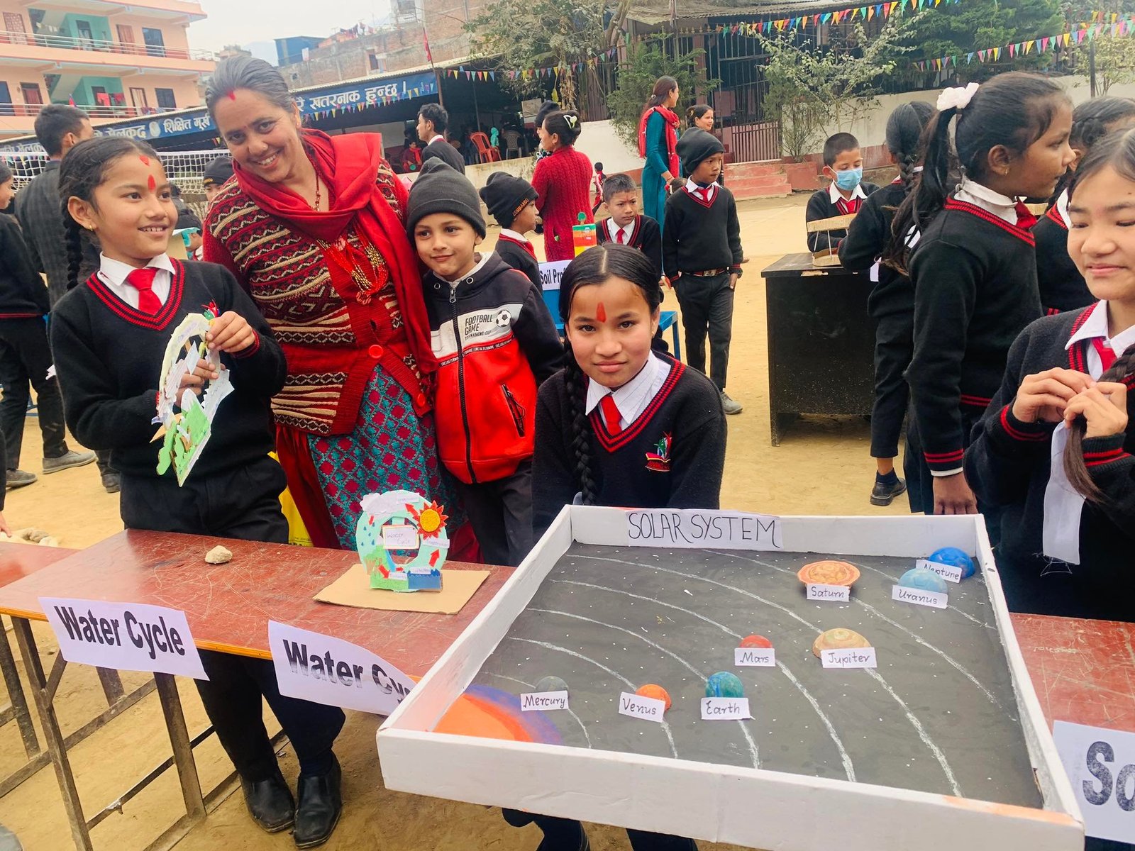 त्यसैगरी कक्षा एकदेखि नौसम्मको विज्ञान प्रदर्शनी मेलामा विद्यार्थीहरूद्वारा निर्माण गरिएका विविध विज्ञान तथा प्रविधि जन्य सामग्रीहरू प्रदर्शन गरिएको थियो । जस अन्तर्गत मिनिएचर एरोप्लेन, भोल्क्यानो, माइक्रोस्कोप, हाइड्रोलिक ब्रिज, हाइड्रोलिक लिफ्ट, हाइड्रोलिक प्रेस, हाइड्रोलिक स्क्याभेटर, हाइड्रोलिक क्रेन, मनि प्रिन्टिङ डिभाइस, ह्वील एण्ड एक्सल मोडल, सोलार हिटर, वाटर डिस्पेन्सर, रेन वाटर हार्भेस्टिङ, मोडल अफ युरिनरी सिस्टम, ग्रीन हाउस, पिनहोल क्यामेरा, सोलार सिस्टम, पेरिस्कोप, वाटर फिल्टर, स्मार्ट सिटि, जर्मिनेशन अफ सिड्ज, सनडायल, फुड चेन, लाइफ साइकल अफ बटरफ्लाई, एनिमल सेल, प्लान्ट सेल, लाइफ साइकल अफ फ्रग्ज, अनियन सेल, ढिकी, एक्सटर्नल स्ट्रकचर अफ ब्रेन, क्विज बक्स, ह्यूमन नर्भस सिस्टम, वाटर साइकल आदि प्रदर्शनीमा राखिएको थियो ।