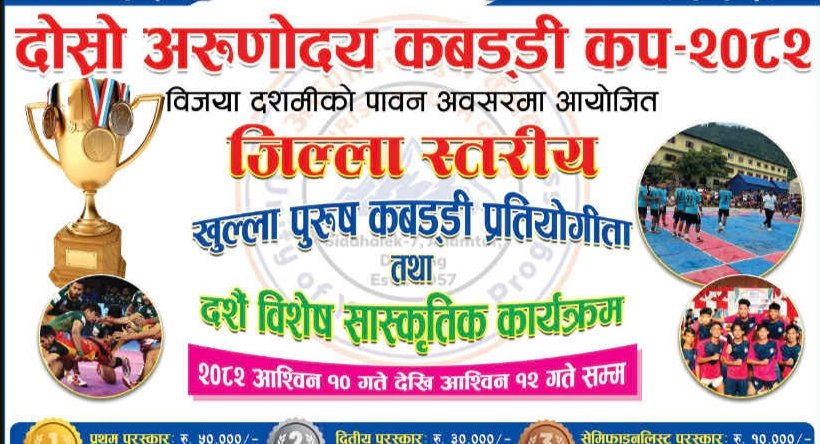 दोश्रो अरुणोदय कबड्डी कप असाेज १० देखि हुने