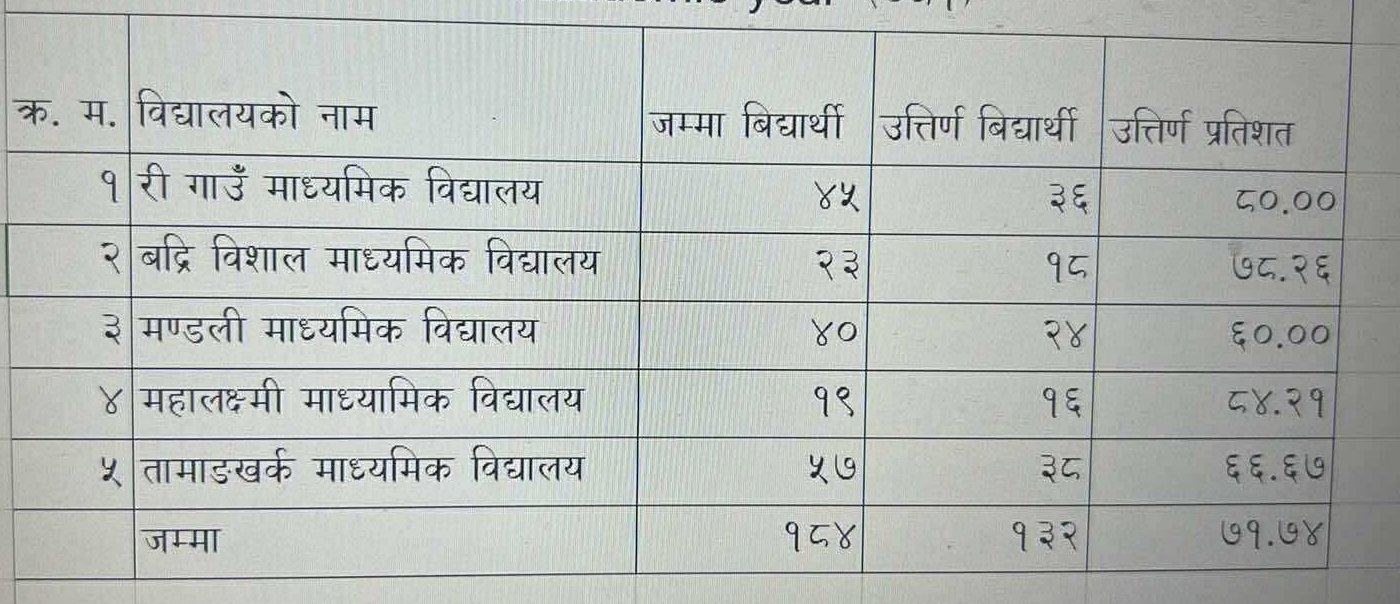 गंगाजमुनाको विद्यालयगत नतिजा