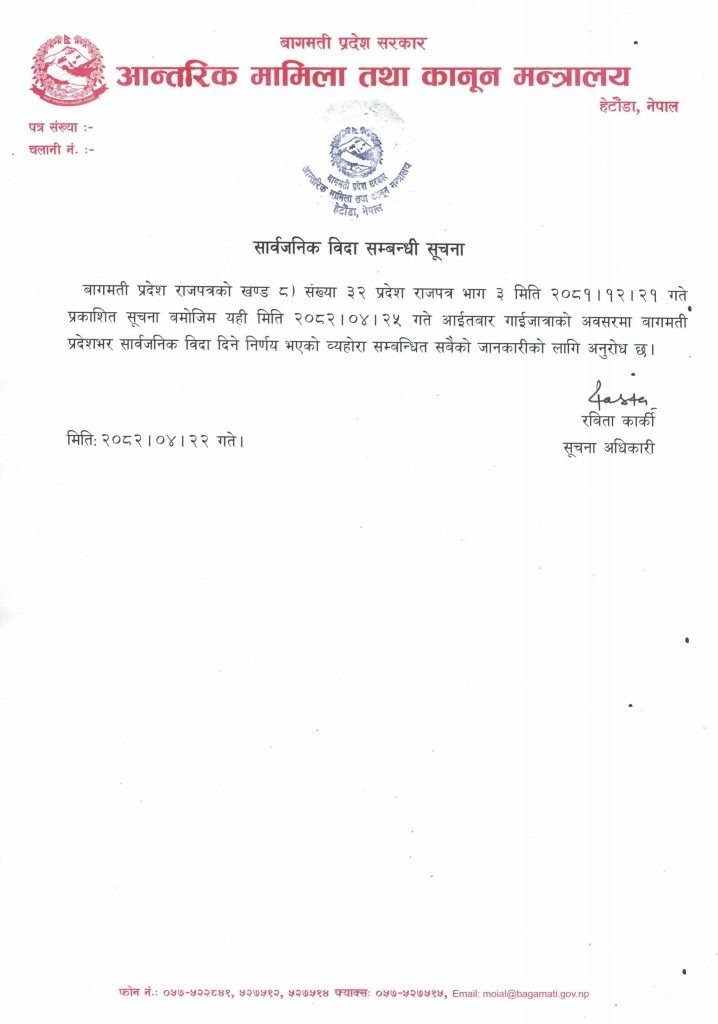 हेटौंडा । गाईजात्रा पर्वको अवसरमा बागमती प्रदेश सरकारले साउन २५ गते सार्वजनिक बिदा दिने निर्णय गरेको छ ।