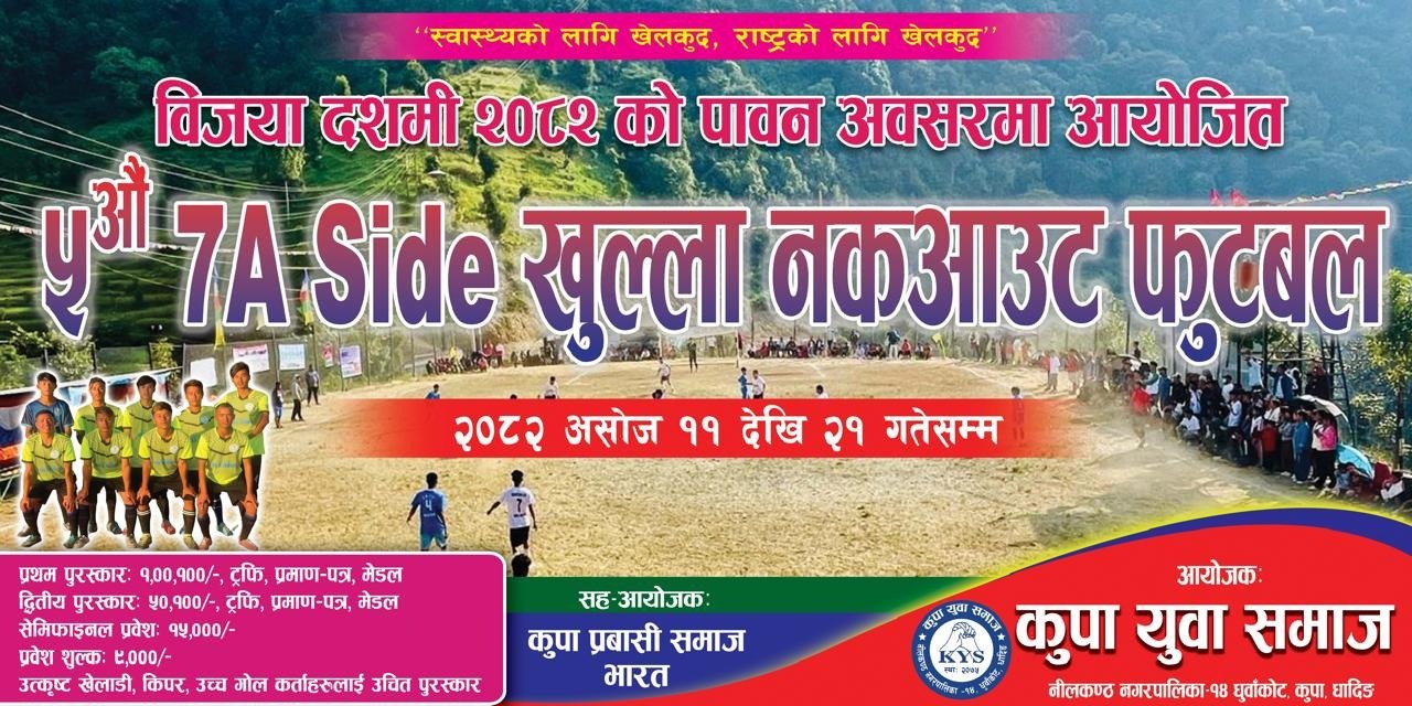 “स्वास्थ्यका लागि खेलकुद, राष्ट्रका लागि खेलकुद” भन्ने नारासहित विजया दशमी २०८२ को पावन अवसरमा आयोजना हुन लागेको यो प्रतियोगिता कुपा युवा समाजको आयोजना र कुपा प्रबासी समाज भारतको सह-आयोजनामा हुन लागेको हो ।