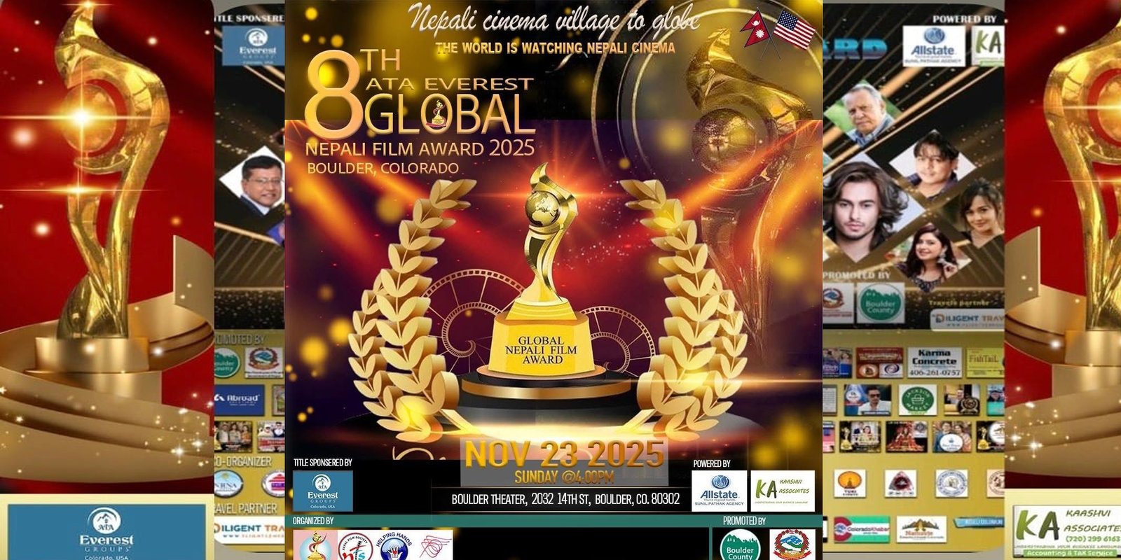 कोलोराडो, अमेरिका । कोलोराडोको बोल्डर सहरमा आगामी नोभेम्बर २३ मा आयोजना हुन लागेको ८औँ एटिए एभरेस्ट ग्लोबल नेपाली फिल्म अवार्ड २०२५ का सबै तयारी पूरा भएको आयोजकहरूले बताएका छन्।