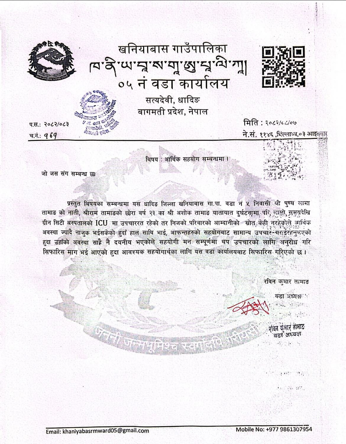 प्राप्त सहयोगले पनि अशोकको उपचारमा महत्वपूर्ण भूमिका खेल्ने भन्दै सबैमा सहयोगको अपिल गरेको छ।