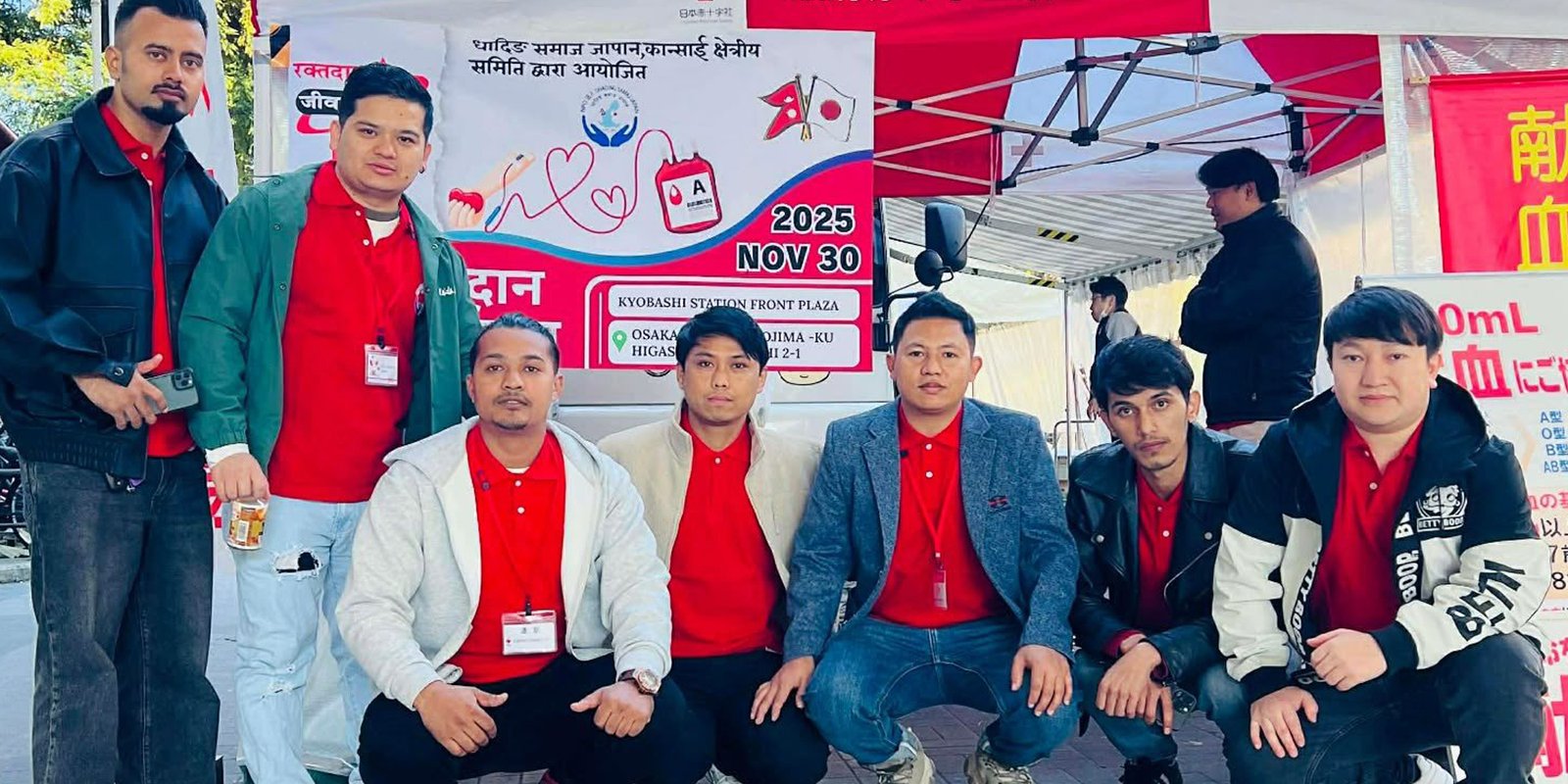 धादिङ। धादिङ समाज जापानले स्थानीय रेडक्रस सोसाईटीको सहकार्यमा आइतबार टोकियो, नागोया र ओसाका—जापानका तीन प्रमुख शहरमा एकैदिन रक्तदान कार्यक्रम सम्पन्न गरेको छ। पहिलोपटक तीनै सहरमा एकैसमय आयोजन गरिएको अभियानले जापानमा रहेका नेपाली समुदायलाई मानवीय कार्यमा एकताबद्ध गरेको छ।