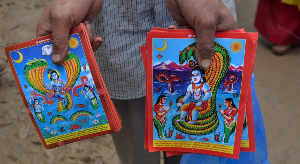 मूलढोकामा नागको चित्र टाँसी आज नागपञ्चमी मनाईदै