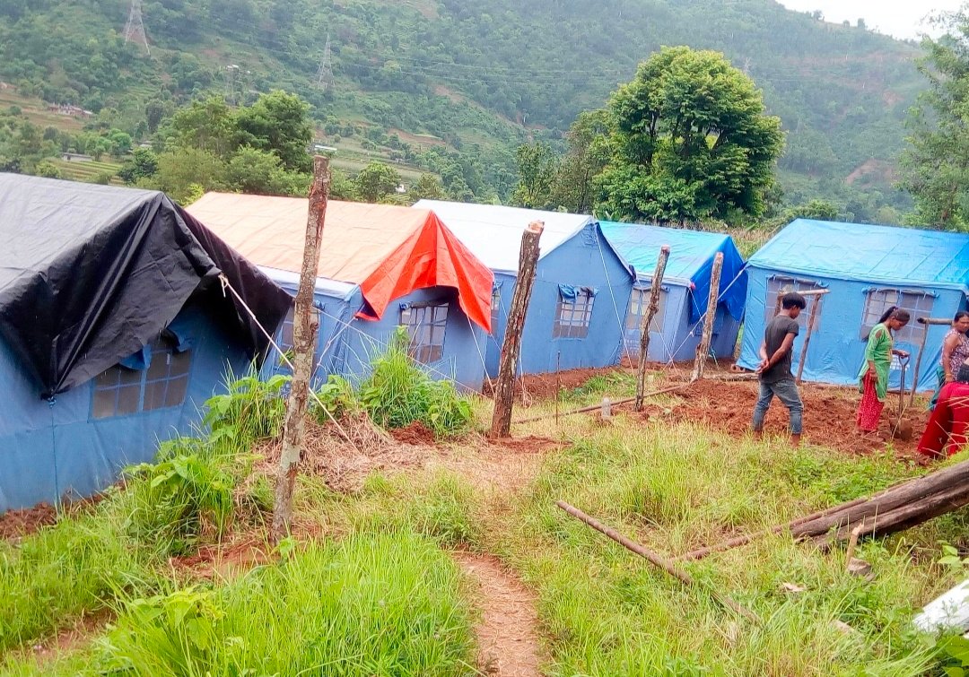 गजुरीका १८ घर पहिराे विस्थापितलाई अस्थायी टहरा बनाउन प्रकाश र पुष्ष उप्रेतीद्वारा जग्गा प्रदान