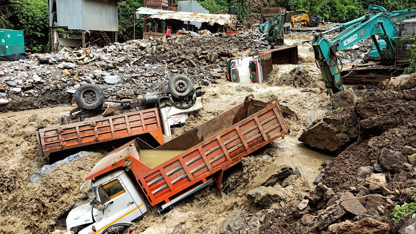 धादिङको जवाङ खोलामा ५ एक्साभेटर र ७ ट्रिपर क्षेति (फोटो फिचर)