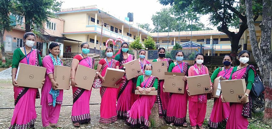 अनलाइनमा पढाउन, नीलकण्ठ माविका शिक्षकलाई ल्यापटप प्रदान