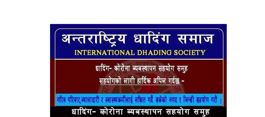 अन्तराष्ट्रिय धादिङ समाजले राहत सहयोग गर्ने (अहिले सम्मका सहयोगीको नाम समेत)