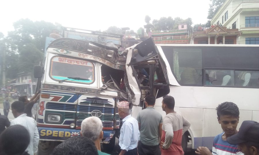 काठमाडौं जादै गरेको बस ट्रकमा ठोकिदा १८ जना घाईते