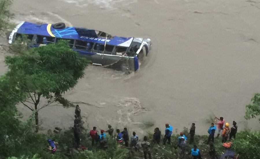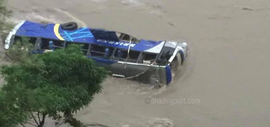 त्रिशुलीमा बस खस्दाः ४ को मृत्यू,१४ घाईतेको उद्दार, २० वेपत्ता