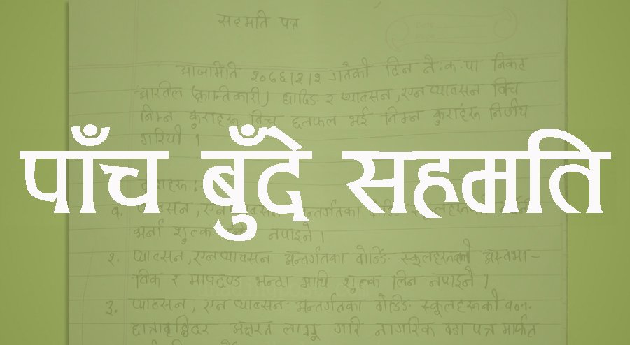 अखिल क्रान्तिकारी र प्याब्सन, एन प्याब्सन बीच पाँच बुँदे सहमति