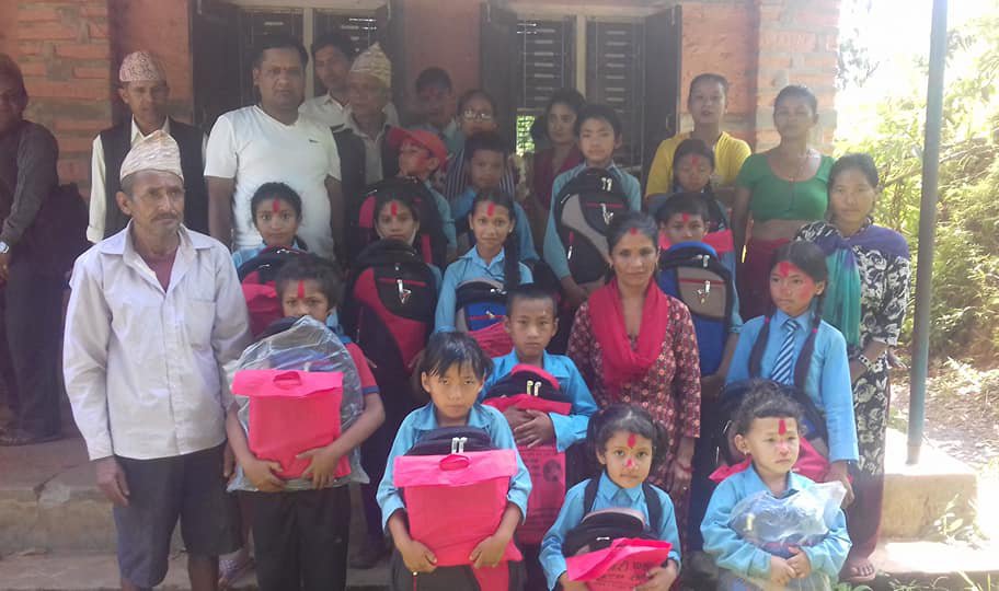 रमेश ढकालद्वारा विद्यार्थीलाई शैक्षिक सामाग्री प्रदान