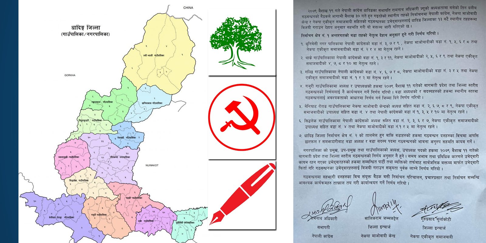 धादिङमा सत्ता गठबन्धनले यसरी गरे वडा सम्म तालमेल