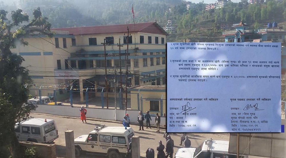 धादिङ अस्पतालले, मृतक सुत्केरी महिलाको परिवालाई ४ लाख १० हजार दिने सहमती