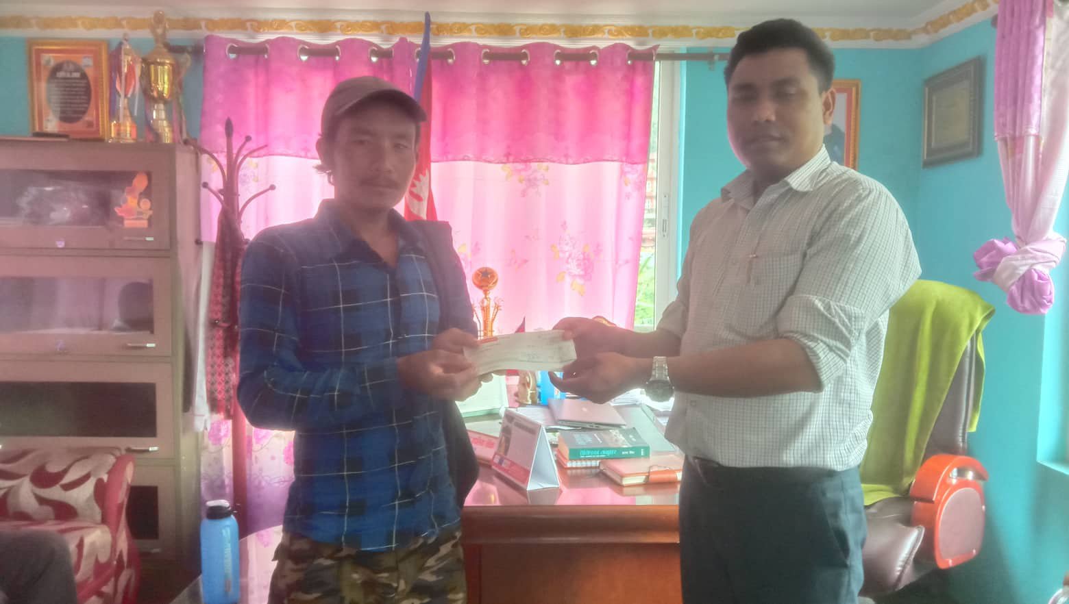 आगलागी पीडित चेपाङ परिवारलाई गाउँपालिकाको आपतकालिन सहयोग