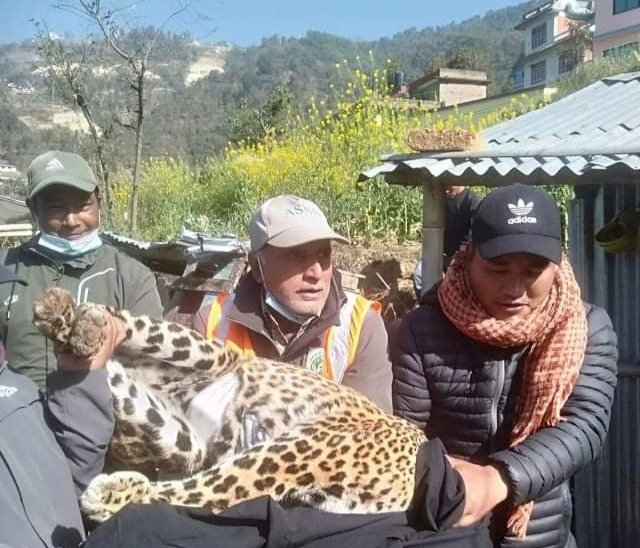 कुखुराकाे खाेरमा पसेर फसेकाे चितुवालाई सकुशल उद्दार