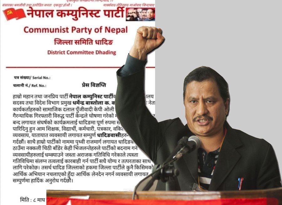विप्लव नेकपा धादिङको विज्ञप्ती, माघ १० गतेको बन्द सफल बनाउन आव्हान
