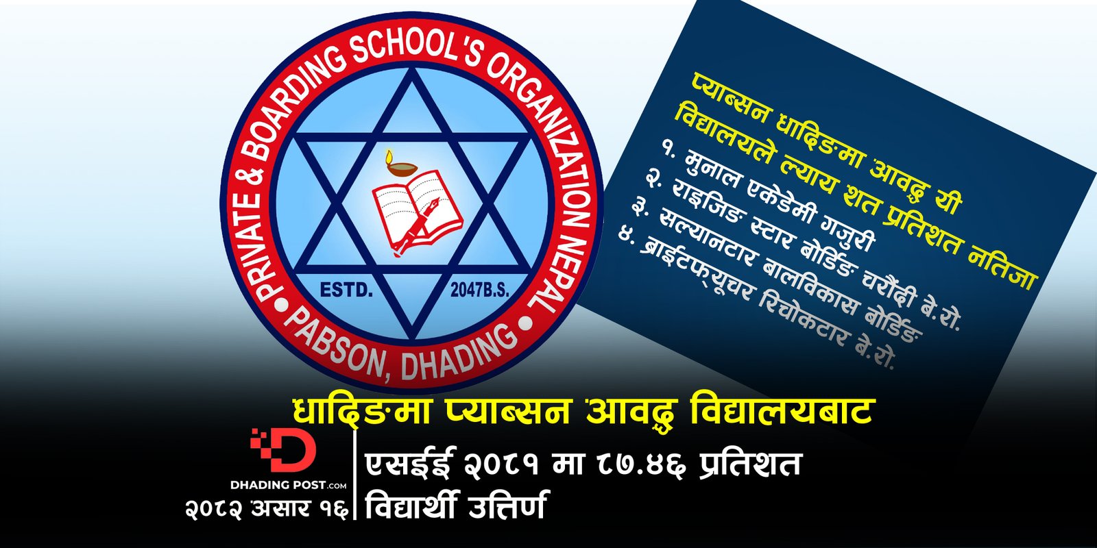 धादिङमा प्याब्सनले एसईईमा ८७.४६ प्रतिशत विद्यार्थी उत्तिर्ण गराउन सफल